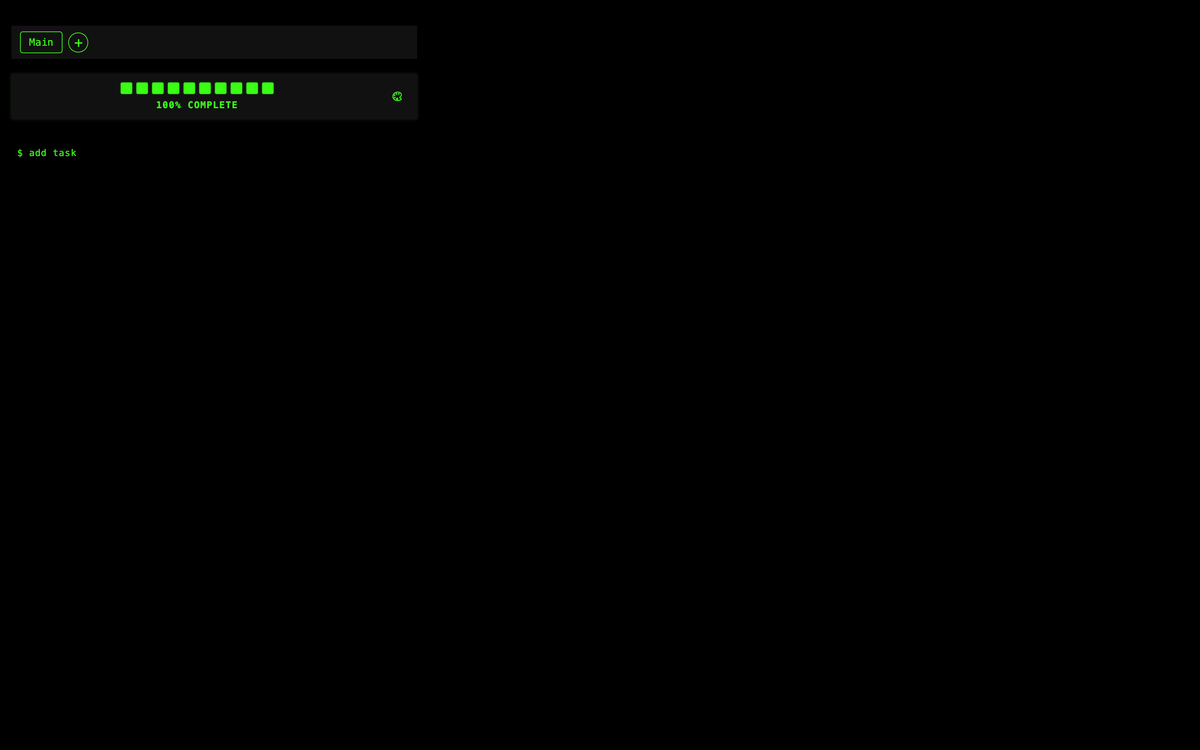 TODO CLI is a very simple productivity application designed with a command-line interface aesthetic. Combining the visual simplicity of a terminal with powerful task management features, this application provides a unique and efficient way to manage tasks for users who appreciate minimalist design, with several themes present.